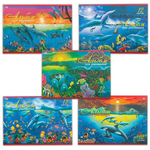 Альбом для рисования А4, 12 листов, скоба, HATBER "Дельфины"