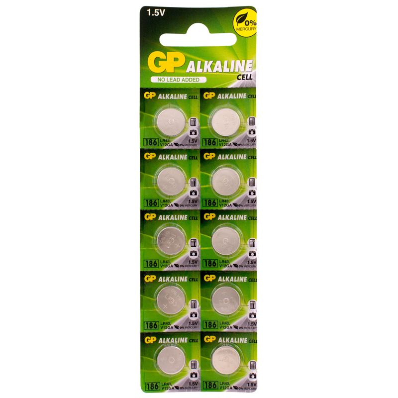 Батарейка GP LR43 (G12, V12GA, 186) алкалиновая