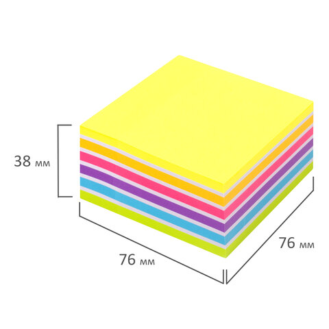 Блок самоклеящийся (стикеры) BRAUBERG НЕОНОВЫЙ 76х76 мм, 400 листов, 7 цветов
