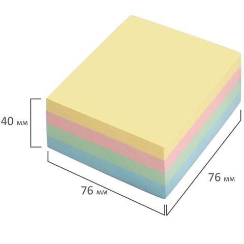 Блок самоклеящийся (стикеры), BRAUBERG, ПАСТЕЛЬНЫЙ, 76х76 мм, 400 листов, 4 цвета