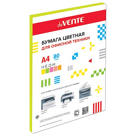 Бумага цветная deVente неон желтая А4, 80г/м2, 50л.