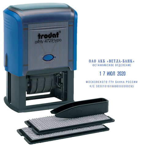 Датер самонаборный, 4 строки+дата, оттиск 50х30 мм, синий, TRODAT 4729, кассы в комплекте, 53334