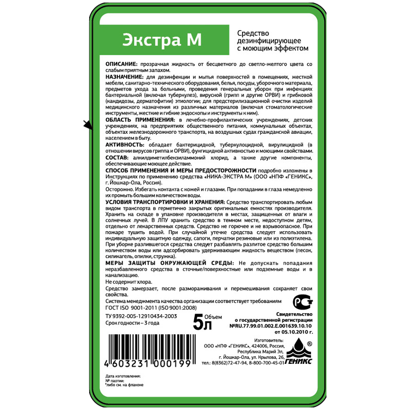 Дезинфицирующее моющее средство Ника "Экстра М", канистра, 5л