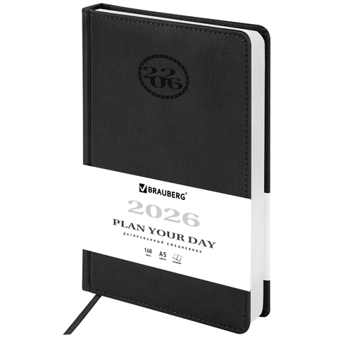Ежедневник датированный 2026, А5, 138x213 мм, BRAUBERG "Favorite", под кожу, черный