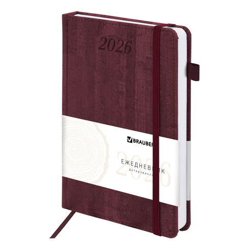 Ежедневник датированный 2026 А5 138x213 мм, BRAUBERG "Wood", под кожу, держатель для ручки, бордо