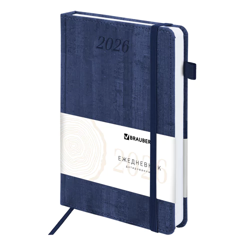 Ежедневник датированный 2026 А5 138x213 мм, BRAUBERG "Wood", под кожу, держатель для ручки, синий