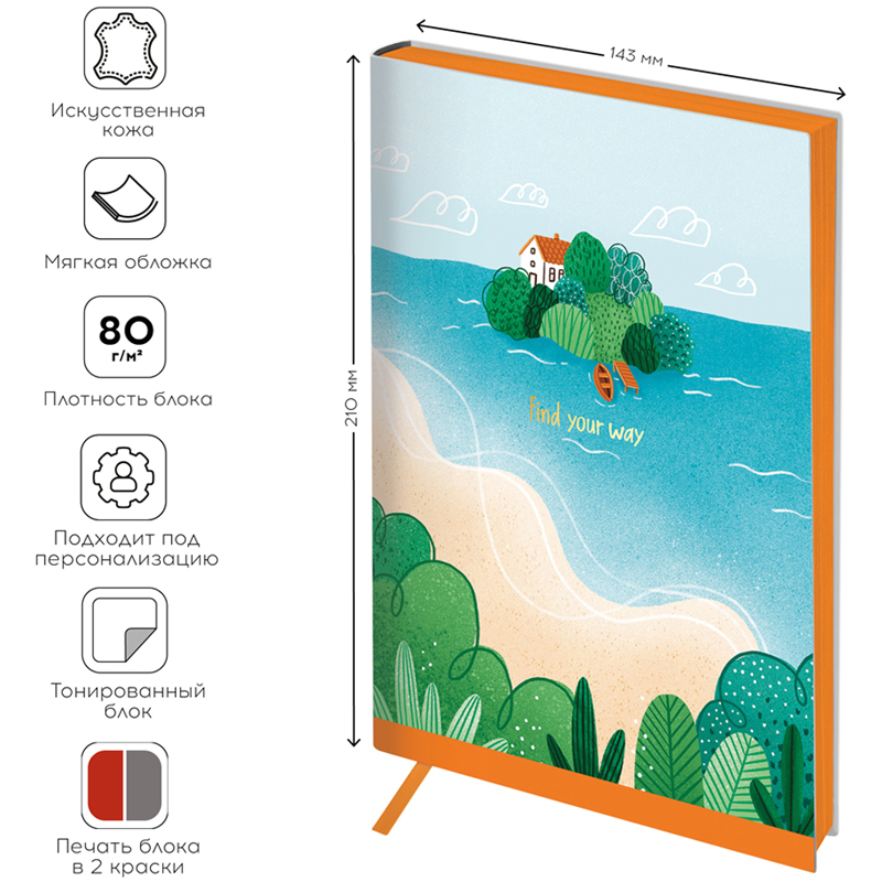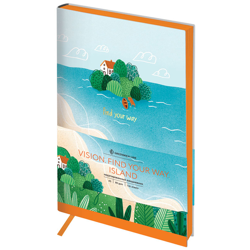Ежедневник недатированный, А5, 136л., кожзам, Greenwich Line "Vision. Find your way. Island", тон. блок, цветной срез