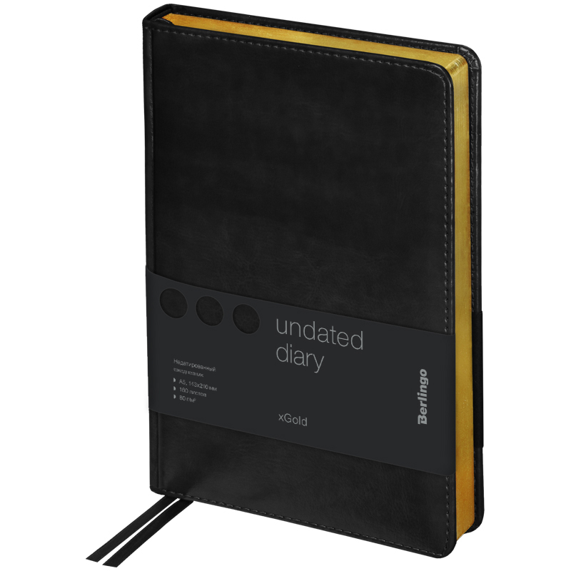 Ежедневник недатированный, А5, 160л., кожзам, Berlingo "xGold", зол. срез, черный