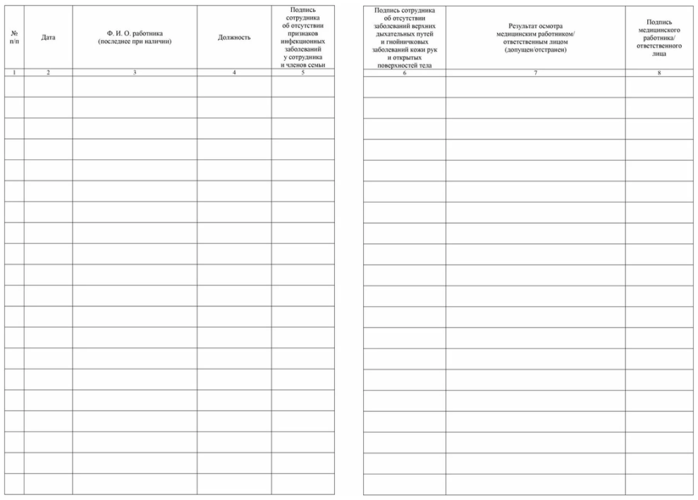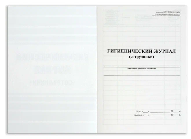 Гигиенический журнал (сотрудники): СанПиН 2.3/2.4.3590-20 А4, 32л. на скрепке, блок офсетная бумага