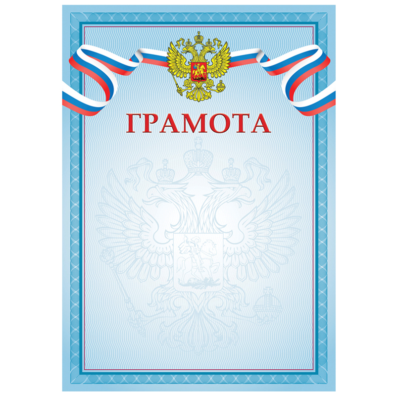 Бланк грамоты формата А4 изготовлен из мелованной бумаги плотностью 115 г/м2. Выполнен в голубом цвете.