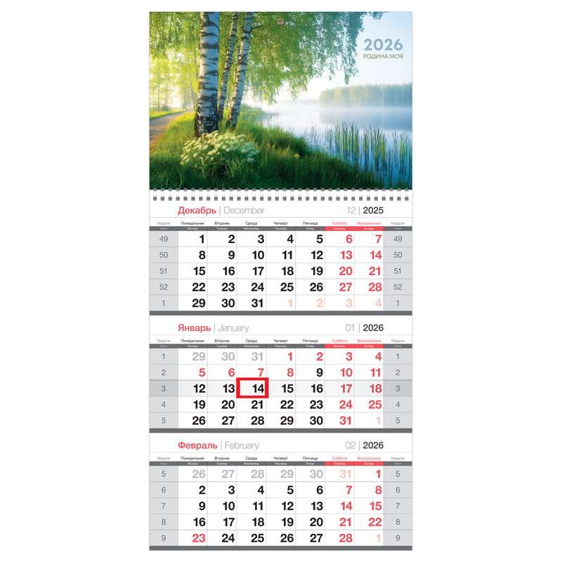 Календарь квартальный 1 бл. на 1 гр., 295*650 мм BG "Любовь к Родине", с бегунком, 2026г.