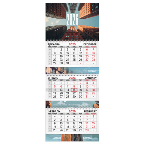 Календарь квартальный 2026 г., 3 блока, 3 гребня, бегунок, мелованная бумага, BRAUBERG EXTRA "Мегаполис",