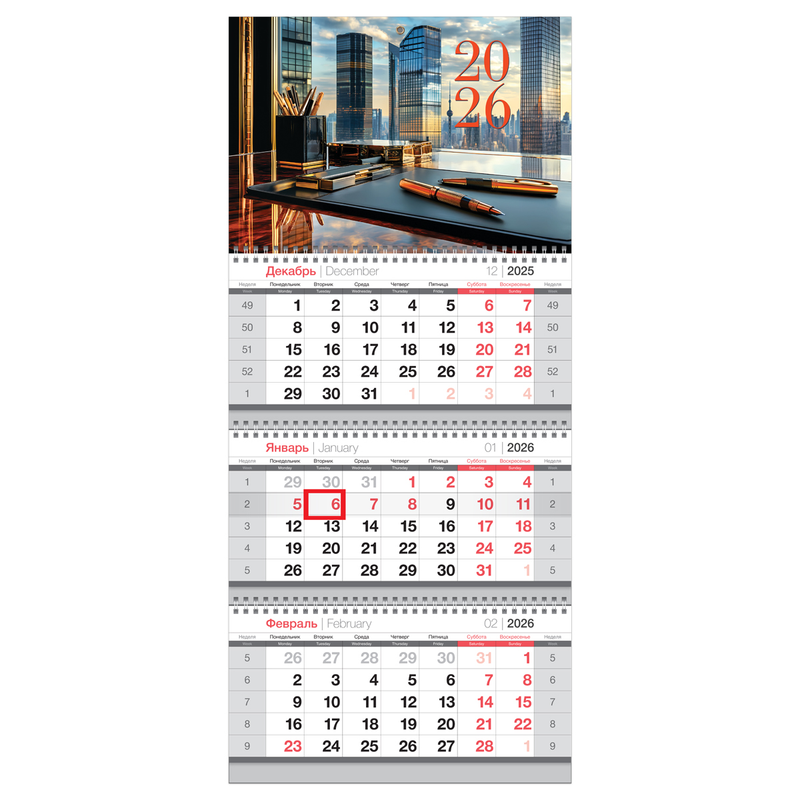 Календарь квартальный 3 бл. на 3 гр., 295*660 мм BG "Офис", с бегунком, 2026г.