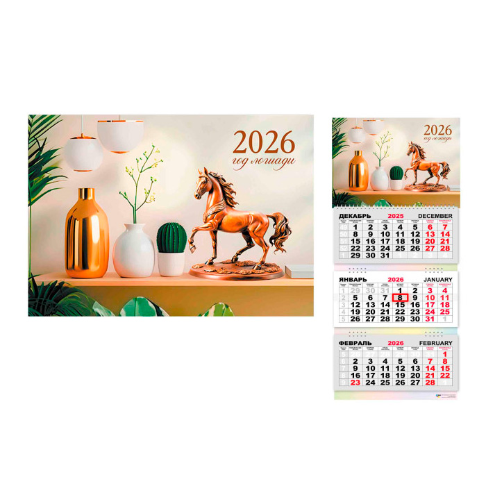 Календарь квартальный 3 бл. на 3 гр., 300*690 мм, Трио Квадра "Офис", 2026г.