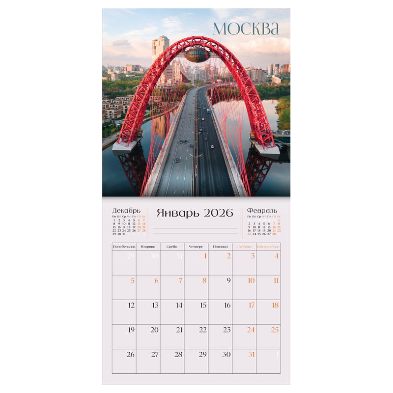 Календарь настенный перекидной на скрепке, 290*290 мм 12л. BG "Путешествие по России", 2026г.