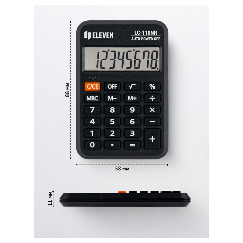 Калькулятор карманный Eleven LC-110NR, 8 разрядов, питание от батарейки, 58*88*11мм, черный