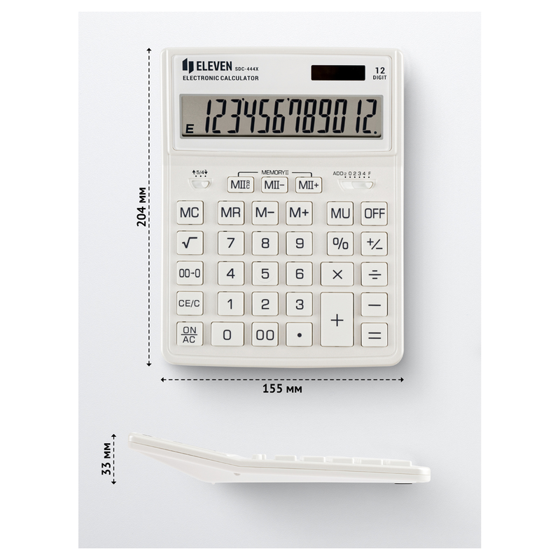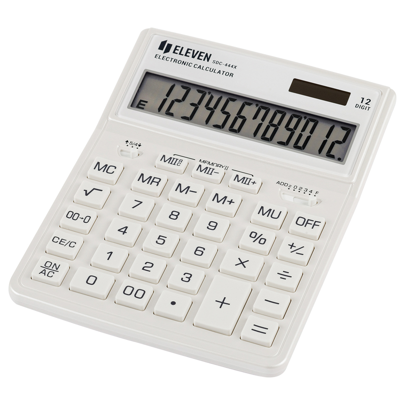 Калькулятор настольный Eleven SDC-444X-WH, 12 разрядов, двойное питание, 155*204*33мм, белый