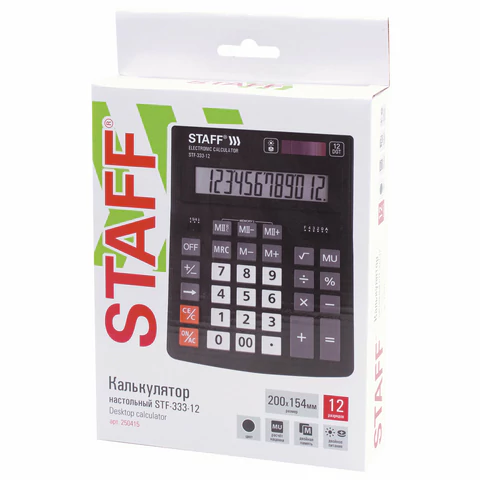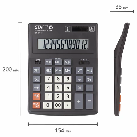Калькулятор настольный STAFF PLUS STF-333 (200x154 мм), 12 разрядов, двойное питание