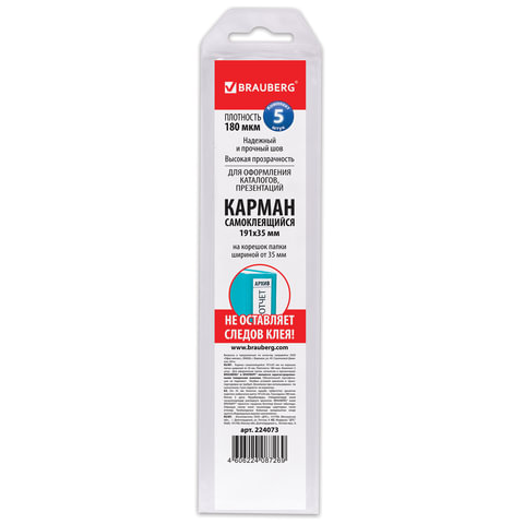 Карманы самоклеящиеся на корешок папки 50 мм (191х35 мм), КОМПЛЕКТ 5 шт