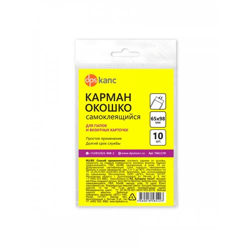 Карманы самоклеящийся А7 (65*100 мм) DPSkanc, д/визитки, пвх, 180мкм, 10 шт.