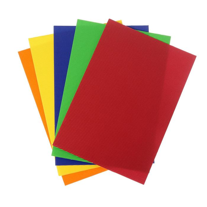 Картон цветной гофрированный А4, Апплика "Перышки", 5л., 5цв., в папке