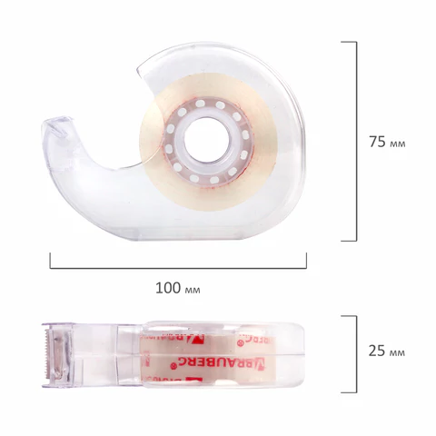 Диспенсер снабжен стальным ножом для отрезания ленты. Подходит для канцелярских клейких лент любого типа шириной до 19 мм и длиной намотки до 33 м.
