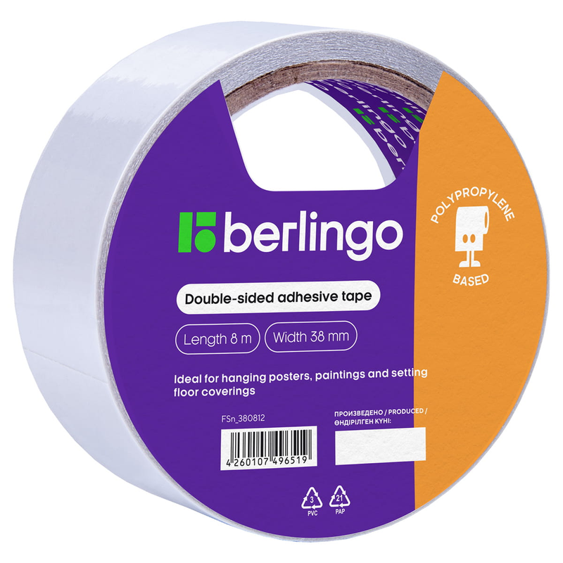 Клейкая лента двусторонняя 38мм*8м, основа-полипропилен