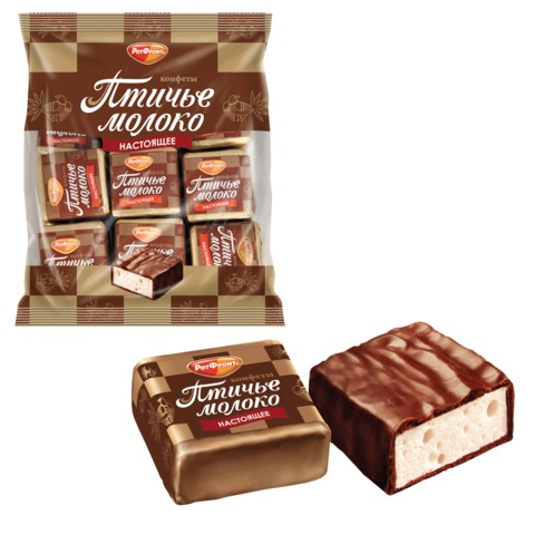 Конфеты шоколадные РОТ ФРОНТ "Птичье молоко", суфле, сливочно-ванильные, 225 г, пакет