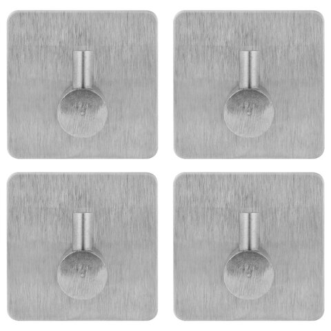Крючки самоклеящиеся универсальные 4,5x4,5 см, КОМПЛЕКТ 4 шт., сталь, серебристые