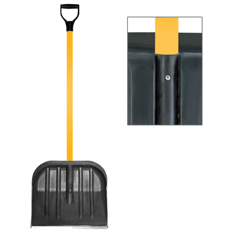 Имеет D-образную рукоятку и усиленный легкий черенок длиной 115 см из алюминия, которые позволяют комфортно удерживать ее в руках и экономить силы при работе, а также снизят нагрузку на спину. Рабочая часть лопаты выполнена из морозоустойчивого пластика толщиной 2-4 мм. Длина рабочей части составляет 40 см, а ширина – 46 см. Длина лопаты с черенком – 140 см.