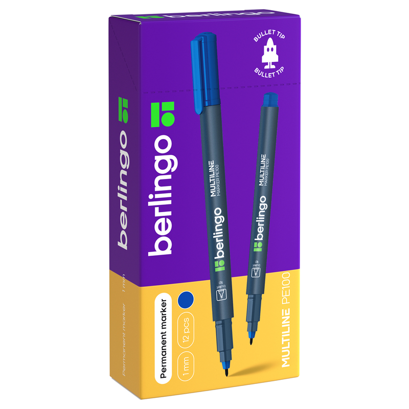Маркер перманентный Berlingo "Multiline PE100" синий, пулевидный, 1мм