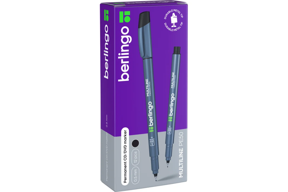 Маркер перманентный для CD/DVD Berlingo "Multiline PE50", черный, 0,5мм