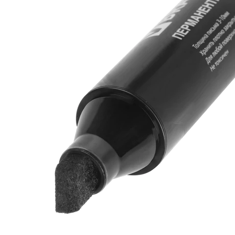 Перманентный промышленный маркер предназначен для использования на всех типах поверхностях: металл, масляная поверхность, шероховатая и ржавая поверхность, пластмасса, стекло, керамика и другое. Прочный пишущий клиновидный узел из полиэстера устойчив к деформации и идеально подходит для маркировки грубых поверхностей. Ширина линии письма составляет 3-10 мм. Маркер имеет ударопрочный пластиковый корпус. Чернила без ксилола и толуола обладают устойчивостью к различным неблагоприятным внешним факторам, таким как влага, солнечный свет, перепады температуры, поэтому быстро высыхают и не стираются.