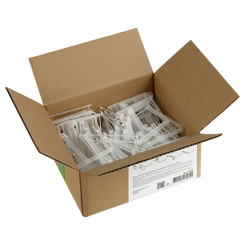 Одно изделие рассчитано на сшивание до 600 листов. На механизмах предусмотрен фиксатор, который позволяет надёжно закрепить документы. Длина ножек изделия составляет 10 см. В наборе 100 штук механизмов.