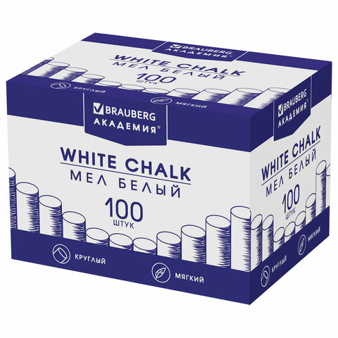Мел белый круглый мягкий 100 штук, BRAUBERG "АКАДЕМИЯ", картонная упаковка (АЛГЕМ)
