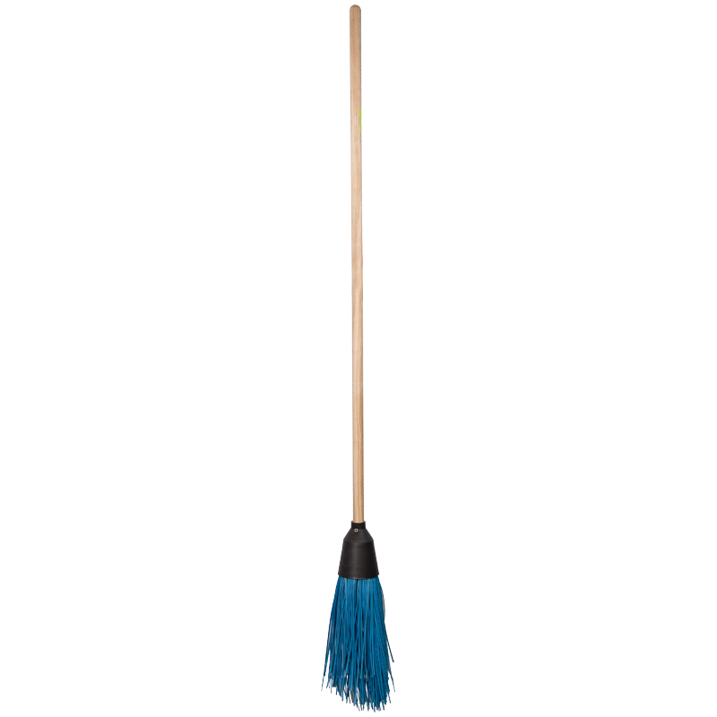 Метла синтетическая, для улицы, круглая, 4 кольца, щетина 30см, с дерев. черенком 120см