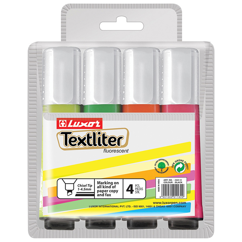 Набор текстовыделителей Luxor "Textliter", 4 шт., АССОРТИ, линия 1-5 мм