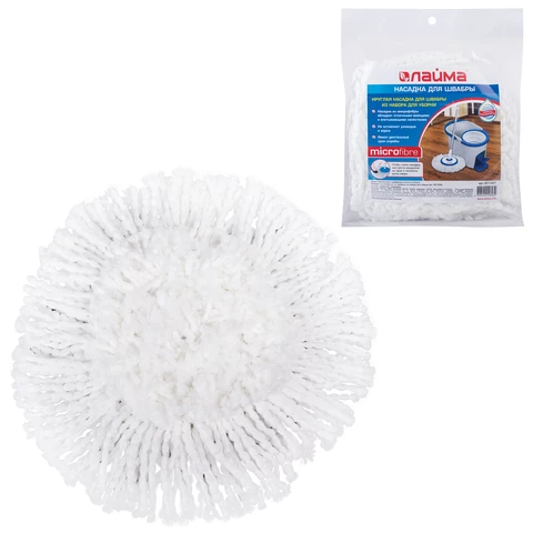 Насадка МОП круглая для швабры из набора для уборки 601459, крепление липучка, микрофибра, d - 16 см, LAIMA