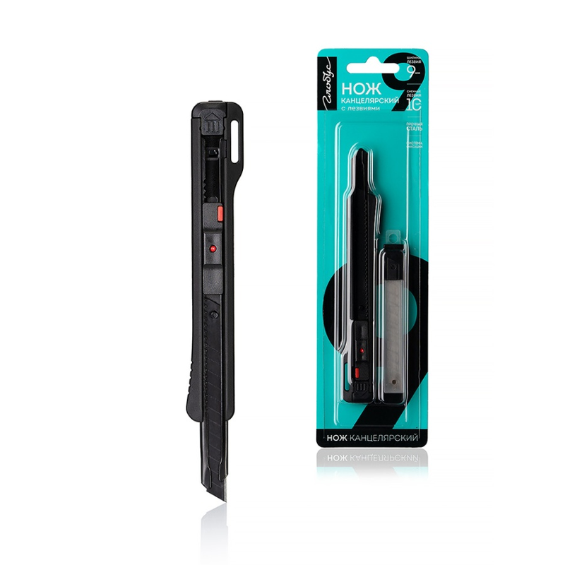Нож канцелярский 9 мм с набором лезвий 10 шт. Выполнен из прочной стали, которая позволяет использовать его не только для резки бумаги и картона, но и как строительный нож для пленки, пластика, обоев, линолеума, распаковки и вскрытия коробок. Нож обладает высокой прочностью и не сломается даже при интенсивных работах.