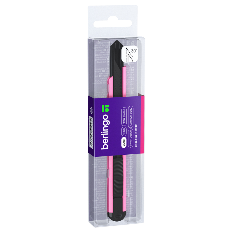 Нож канцелярский 9мм Berlingo "Color Zone", черное лезвие, auto-lock, металл. направл., ассорти