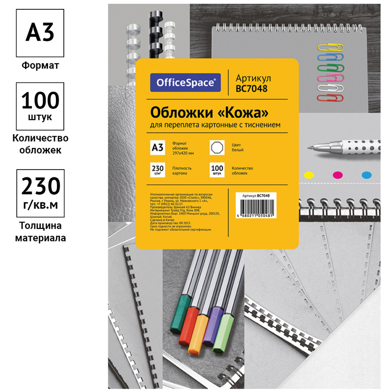 Обложка А3 OfficeSpace "Кожа" 230г/кв.м, белый картон, 100л.