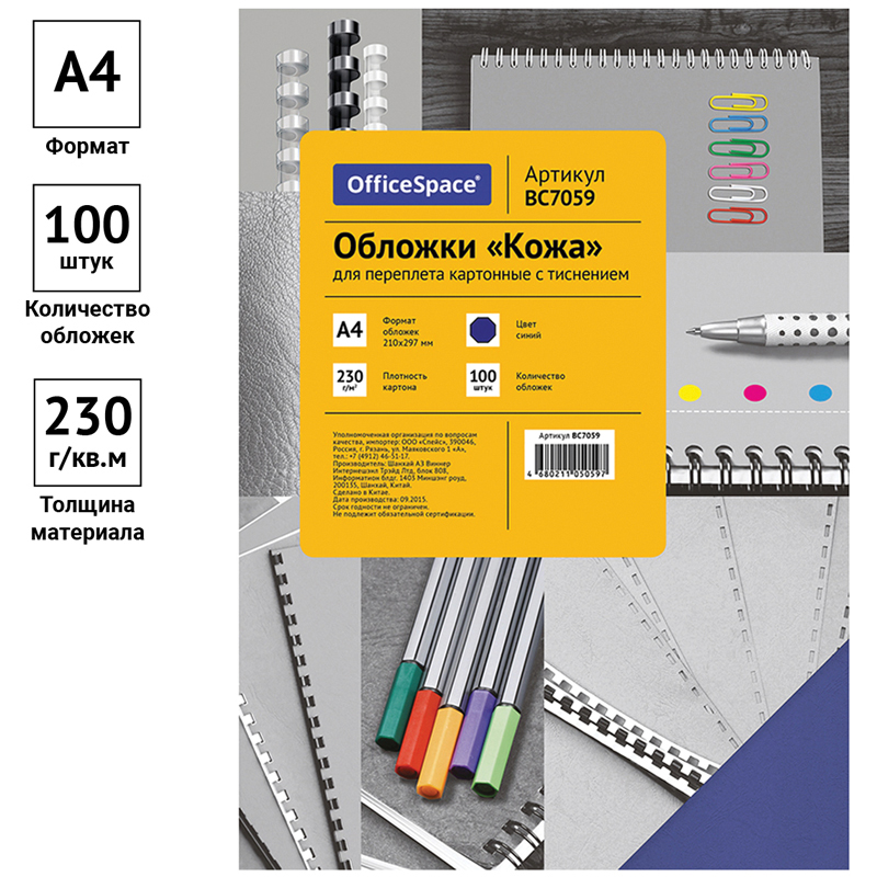Обложка для переплета предназначена для оформления документов. Выполнена из картона синего цвета с тиснением под кожу. Идеально подходит как для переплета на пластиковую, так и на металлическую пружины.