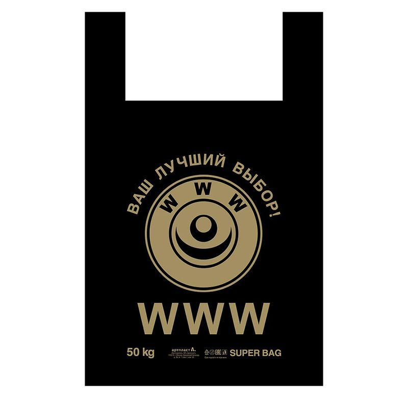 Пакет-майка "Пежо", черный, 43 +20 x 69 см, 40 мкм