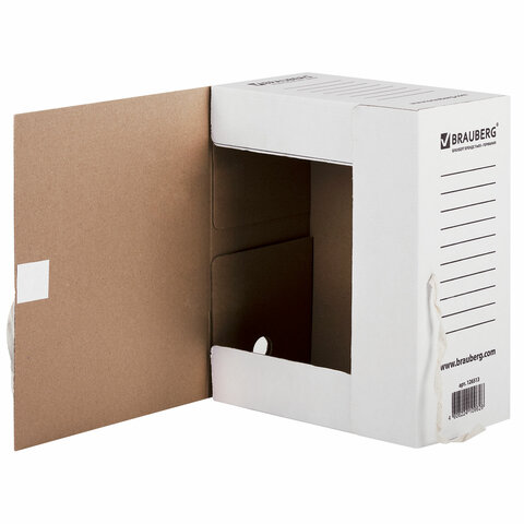 Папка архивная с завязками А4(325х260 мм), 150 мм, до 1400 листов, плотная, микрогофрокартон, белая, BRAUBERG