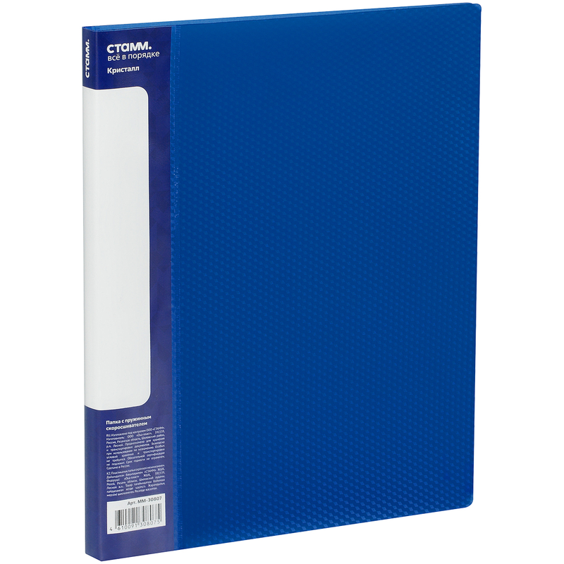 Папка c пружинным скоросшивателем СТАММ "Кристалл" А4, 17мм, 700мкм, пластик, синяя