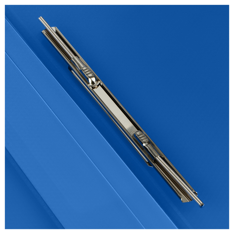 Папка изготовлена из полипропилена толщиной 700 мкм. Размер папки – 305*235 мм. Тип скрепления – пружинный скоросшиватель. Ширина корешка – 17 мм, что позволяет вмещать в папку до 100 листов. На корешке стороне папки имеется карман.