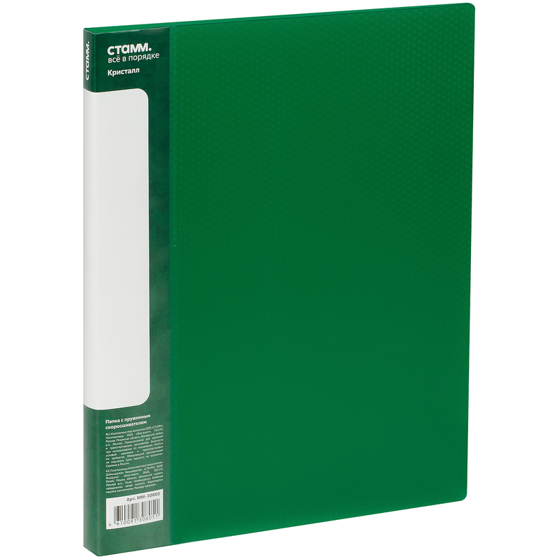 Папка c пружинным скоросшивателем СТАММ "Кристалл" А4, 17мм, 700мкм, пластик, зеленая