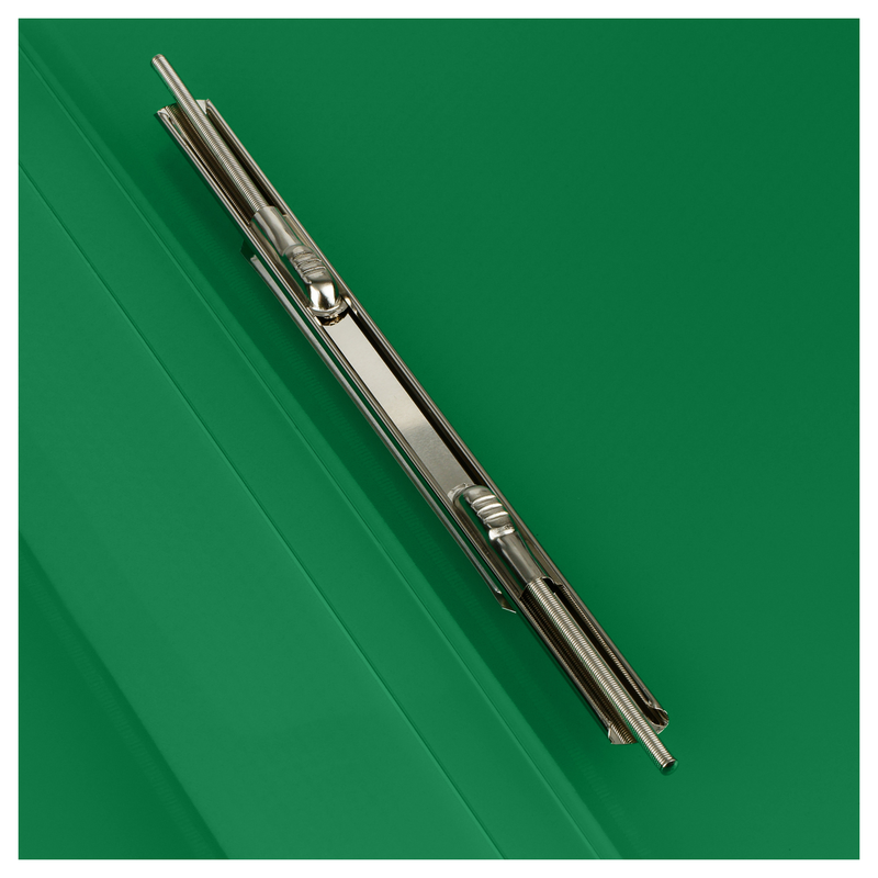 Папка изготовлена из полипропилена толщиной 700 мкм. Размер папки – 305*235 мм. Тип скрепления – пружинный скоросшиватель. Ширина корешка – 17 мм, что позволяет вмещать в папку до 100 листов. На корешке стороне папки имеется карман.