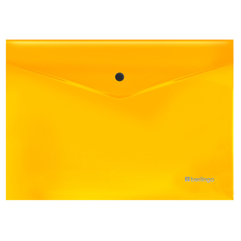 Папка-конверт на кнопке Berlingo "Neon" А4, 200мкм, прозрачная оранжевый неон
