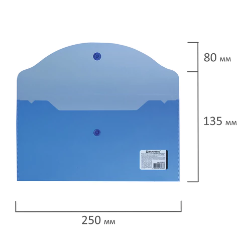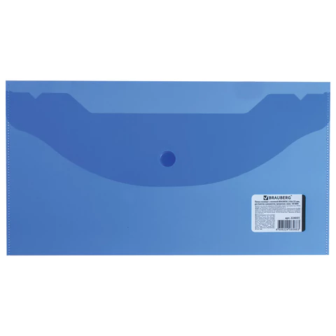 Папка-конверт на кнопке BRAUBERG, А65 (250х135 мм), прозрачная, синяя, 180 мкм
